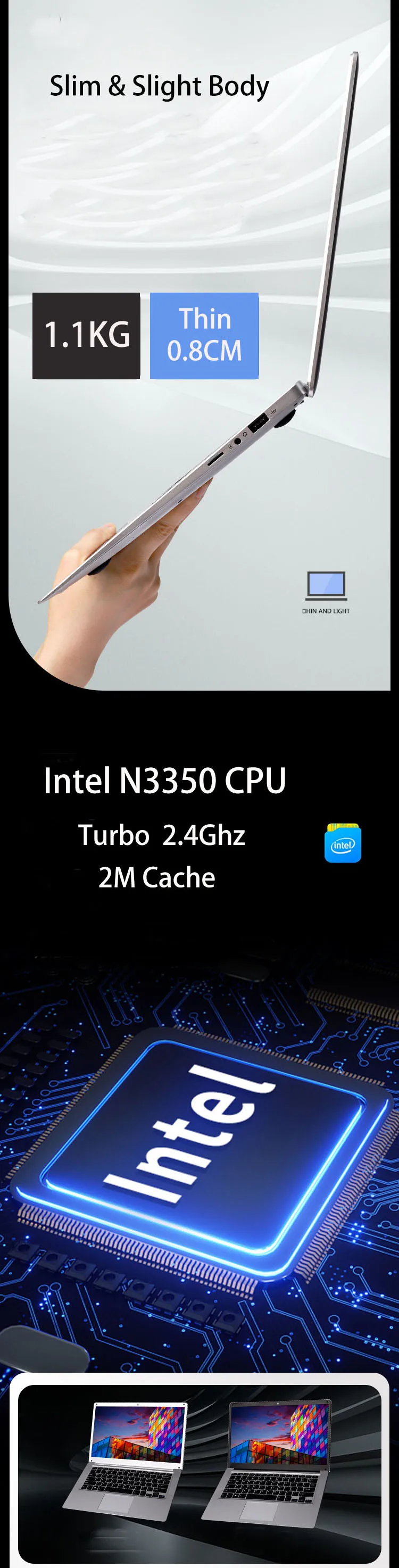 Intel Celeron N3350 (2Cores, 2Threads)  |