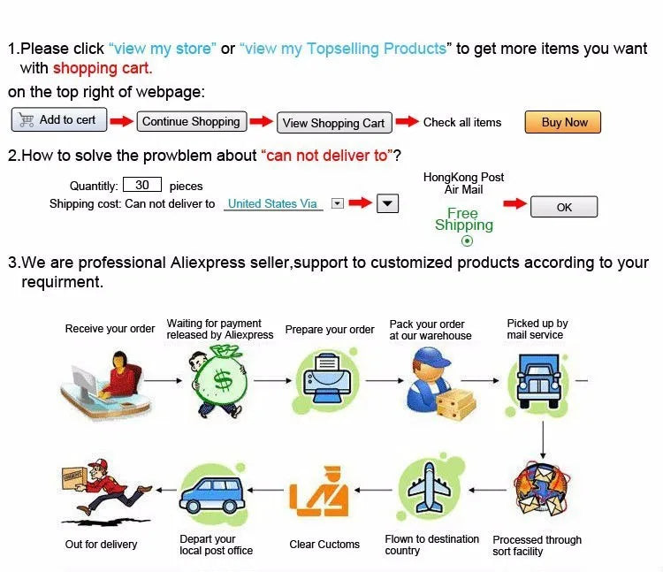 The logistics methods that can be sent in our shop include "Rookie Super Economy", "AliExpress Standard Shipping", "Yanwen Economy" and so on. If you choose the "economical" mode of transportation, some countries will delay receiving packages during the peak logistics season. If you cannot accept the delay, then please choose air mail for faster transportation and protection. (The logistics of the overseas section of "Cainiao Economy" is generally not updated, and you need to pick up the package at the post office) Please choose the appropriate logistics transportation method according to your needs.