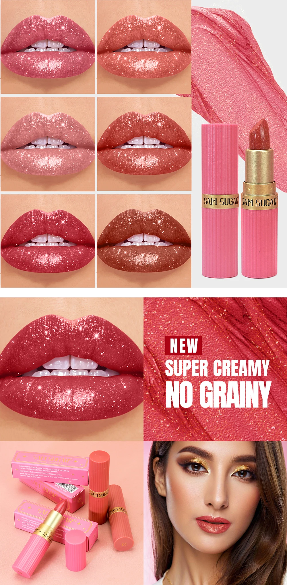 Pearlescent Pink Glitter Velvet Lipstick Metallic Waterproof Long Lasting Matte Shimmer Diamond Lipstick Women Makeup Cosmetic