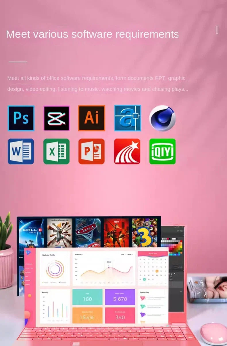 Stylish Pink 15.6" Laptop: Windows 10 Office Education Intel Celeron N5095, 16GB RAM, 1TB SSD, Dual WiFi, Narrow Bezels.