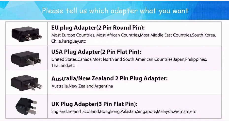 We will send the below listed adapter as gift.